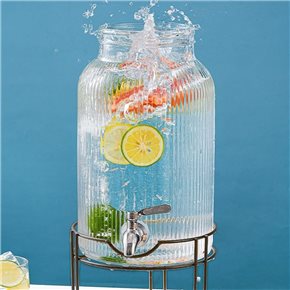 DISPENSADOR 5L VIDRIO RAYITAS BASE METAL PLATA