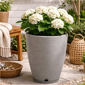 Aporta armonía y calidez a tu casa o jardín con la línea de macetas Ámsterdam Graphito de Floridis. Práctica y resistente, esta maceta de 29X44CM . en color gris oscuro y textura símil piedra es perfecta para tus plantas de interior o exterior. Material: PEAD (polietileno de alta densidad) Resistente al sol y la lluvia, 100% reciclable