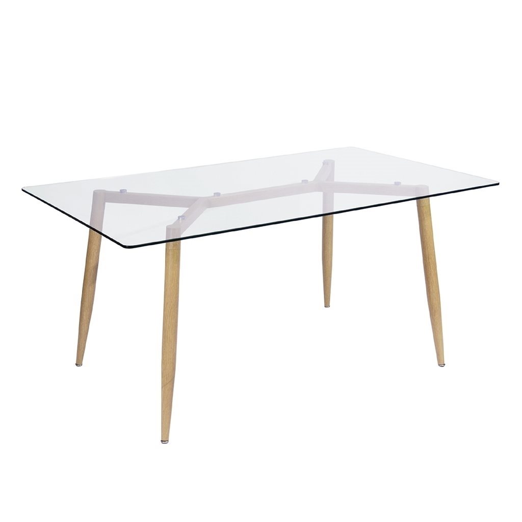 La Mesa Falcon es muy bonita y sofisticada. Su base de acero y acabado simulando madera aporta encanto a la mesa, que con su transparencia aporta belleza, dejando ver su base que utiliza destornilladores para fijarla a la mesa, dándole a la pieza un toque muy especial y diferenciado. Además, es rectangular y sus bordes están redondeados para evitar accidentes. Material: Estructura de acero con acabado que simula la madera y tapa de cristal estampada. Color: Madera Peso: 29 kilogramos