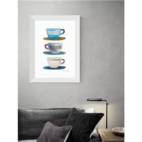 CUADRO CANVAS 40x50cm MARCO TRES TAZAS CAFÉ