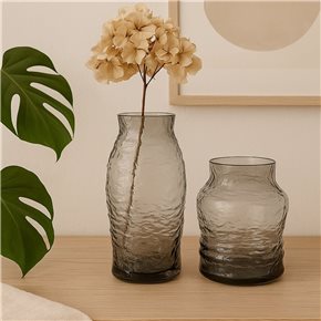 FLORERO VIDRIO LABRADO 14.5x14.5x22CM GRIS