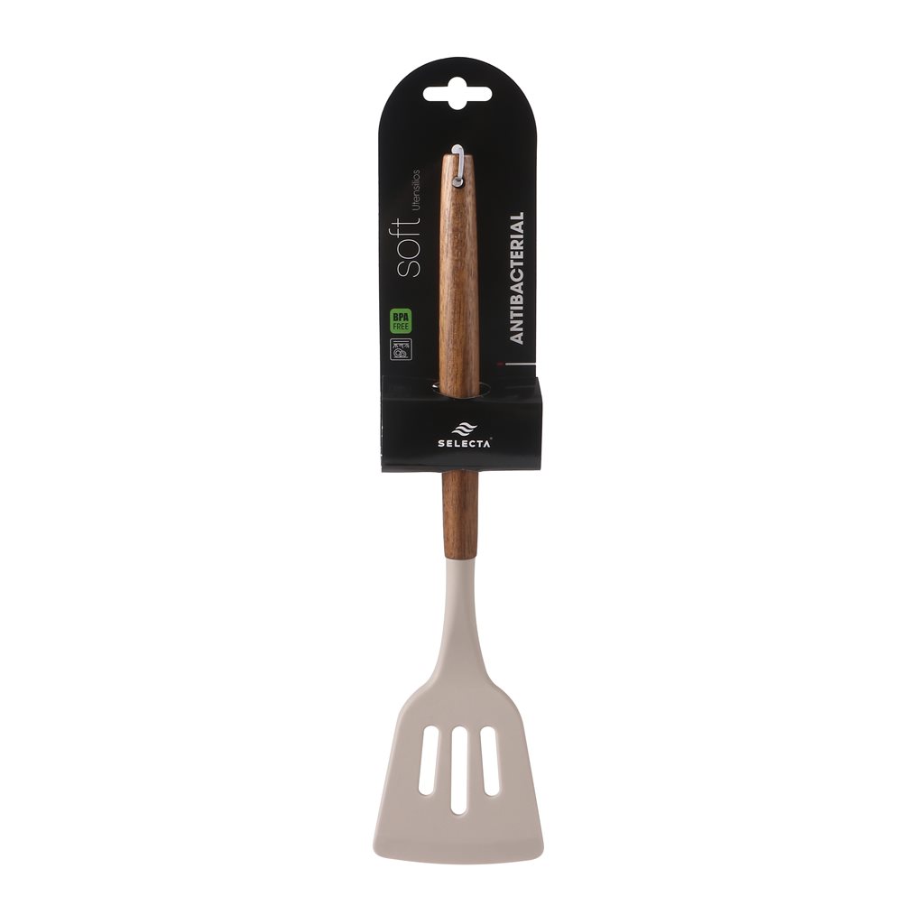 ESPATULA RANURADA SILICONA 31CM MANGO ACACIA BEIGE