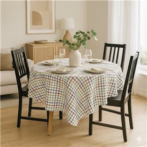 MANTEL REDONDO ALGODÓN D160CM CUADROS MULTICOLOR