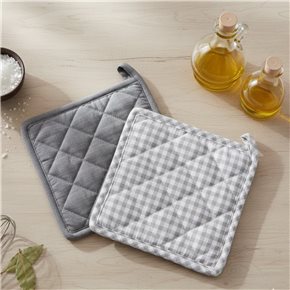 AGARRADERA ALGODÓN 20X20CM CUADROS GRIS