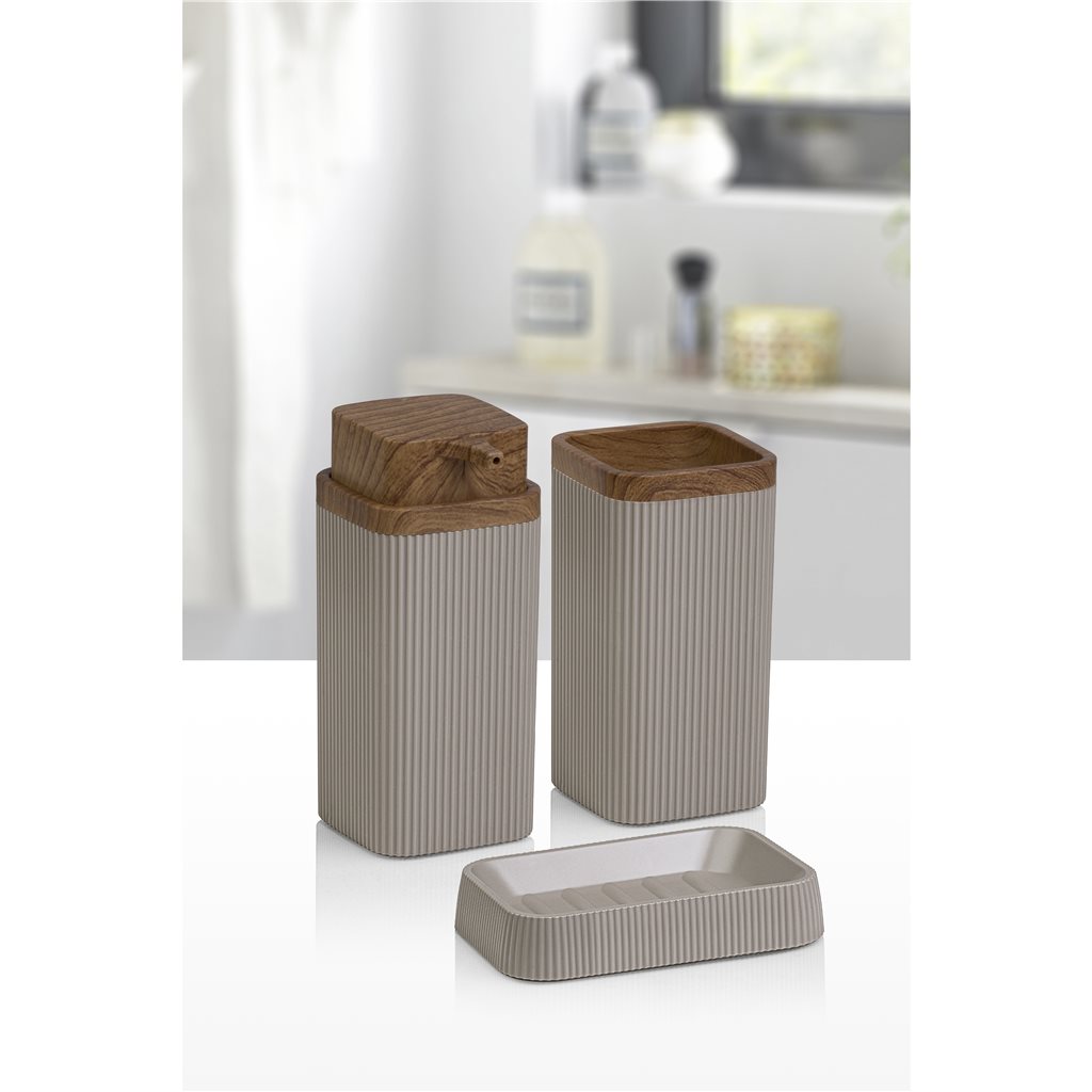 SET 3PCS BAÑO STELLA PP C/MADERA MARRON