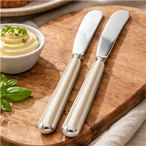 SET X2 CUBIERTO MANTEQUILLA MANGO RAYAS BEIGE "BARCELONA"