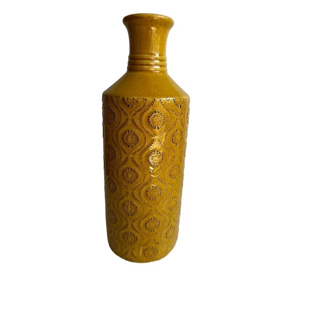 FLORERO ÉTNICO CERÁMICA 11X11X31 AMARILLO