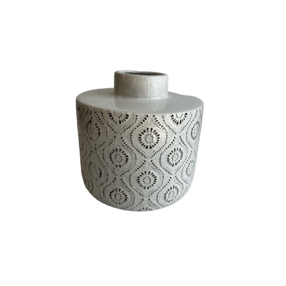 FLORERO ÉTNICO CERÁMICA 17X17X15.5CM BLANCO