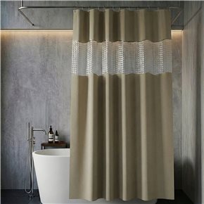 CORTINA DE BAÑO C/VISOR C/GANCHOS 180x200CM BEIGE