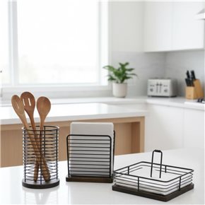 SERVILLETERO METAL CON MADERA 14x6x13CM NEGRO