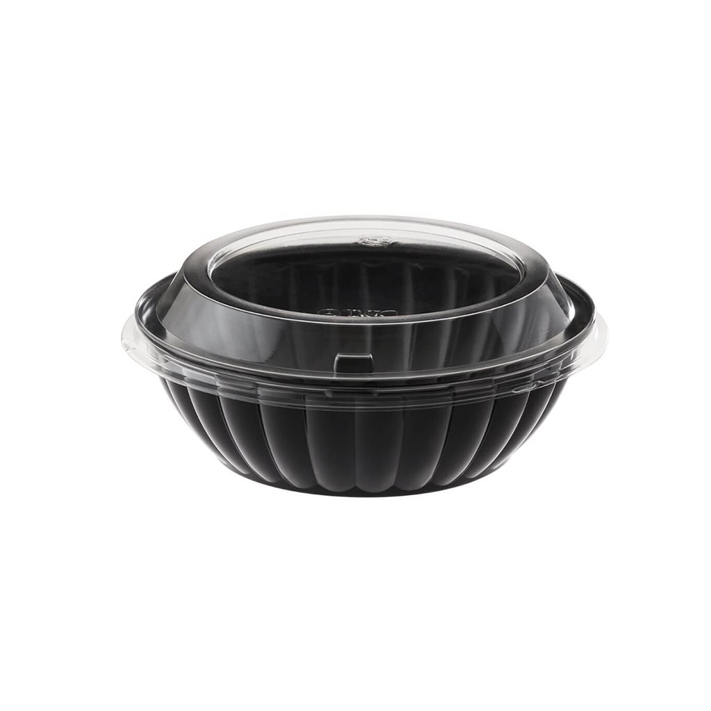 CONTENEDOR REDONDO DOBLE USO NEGRO TAPA DOMO CRISTAL PET 720 ML P/50