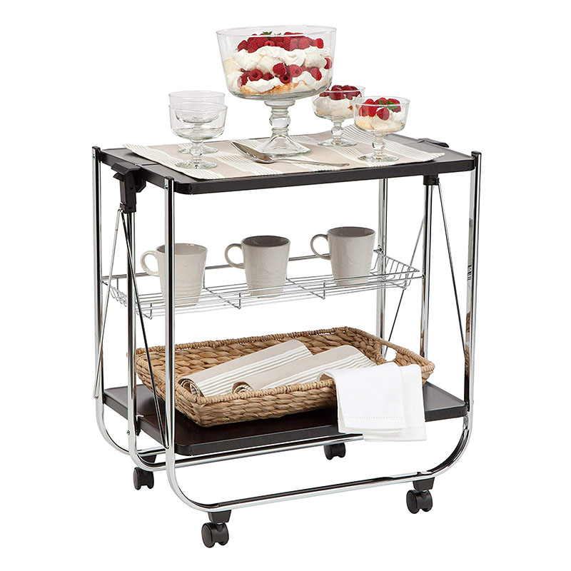 Carro cómodo y práctico ideal para quienes necesitan ahorrar espacio. Se cierra sobre sí mismo en segundos para ser almacenado en rincones estrechos y escondidos. También es ideal como superficie de trabajo, donde colocar accesorios o platos. Ahorra espacio y, si es necesario, lo guardas en un instante gracias a su estructura plegable.