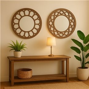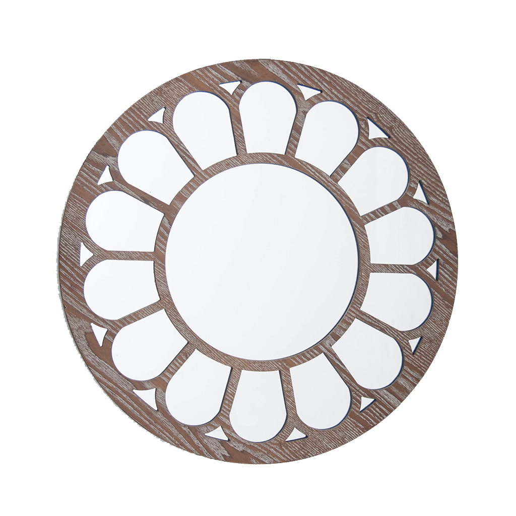ESPEJO CIRC MARCO DISEÑO FLOR D50CM PATINA BLANCO