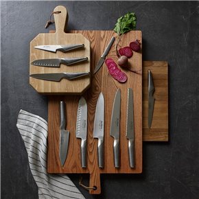 Cuchillo de cocina o de chef considerado tradicional en la mayoría de trabajos de cocina, y sirve para cortar carnes y verduras. Su diseño Hammer Finish, también conocido como martilleado, permite que los alimentos deslicen más fácilmente por la hoja.