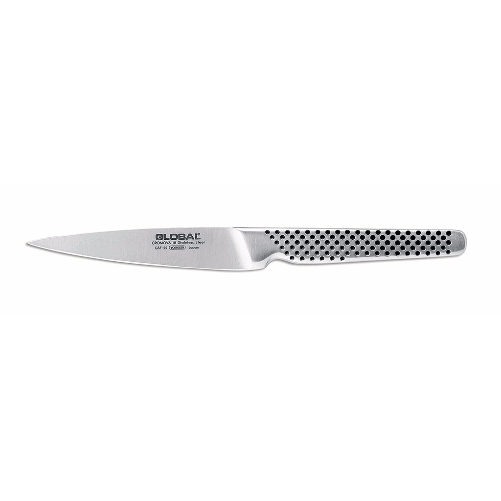 El cuchillo utilitario GSF-22 de Global está pensado especialmente para pelar verduras con agilidad. Realizado íntegramente en acero inoxidable forjado, su hoja cóncava de 11 cm. brinda un afilado de larga duración y permite que el cuchillo se deslice fácilmente por los alimentos. Es apto para lavavajillas, sin embargo, se recomienda limpiar con una esponja suave y jabón neutro.