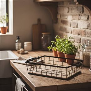 CESTA METAL/MADERA 45x25x10.5CM NEGRO