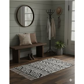 ALFOMBRA 50x80CM TRIANGULOS TRIBAL BLANCO Y NEGRO