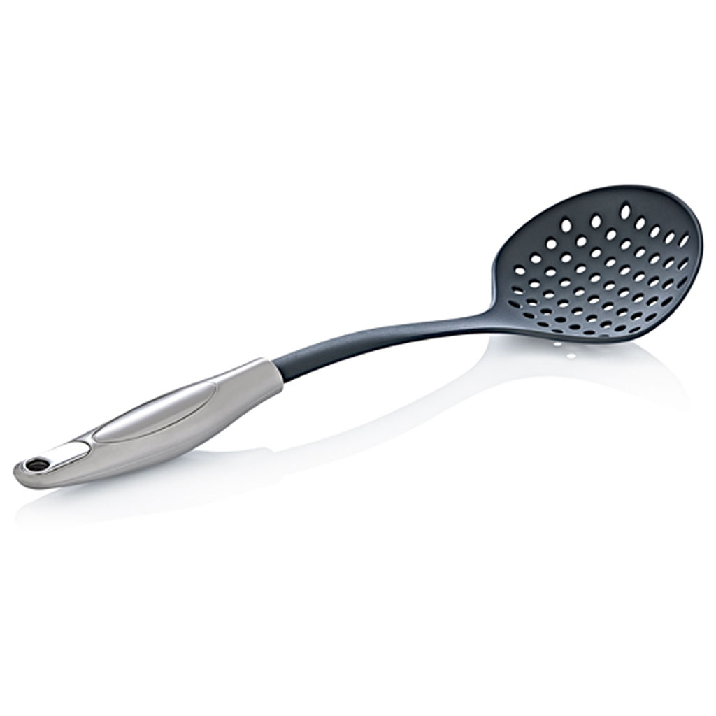Esta práctica espumadera de la marca Free Cook es muy útil para tu cocina. Fabricada en nylon y de dimensiones 11x 35cm., está disponible en rosa y gris.