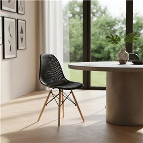 La silla Eames Colmena tiene un diseño que encaja en todos tus ambientes, dándote el máximo confort que puede ofrecer una silla. Su asiento hueco se parece a una colmena y combinada con su base en madera harán de tus espacios más originales. Altura: 0,83 m - Longitud: 0,42 m - Ancho: 0,47 m - Peso soportado: 120kg - Ideal para uso: Interior