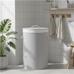 CESTO PLEGABLE R. D40X60CM C/TAPA,FUNDA BAMBÚ GRIS