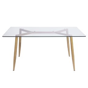 La Mesa Falcon es muy bonita y sofisticada. Su base de acero y acabado simulando madera aporta encanto a la mesa, que con su transparencia aporta belleza, dejando ver su base que utiliza destornilladores para fijarla a la mesa, dándole a la pieza un toque muy especial y diferenciado. Además, es rectangular y sus bordes están redondeados para evitar accidentes. Material: Estructura de acero con acabado que simula la madera y tapa de cristal estampada. Color: Madera Peso: 29 kilogramos