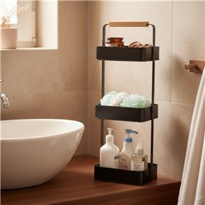 ESTANTERIA 3NIVELES NEGRO MATE Y BAMBU 22X15X71H