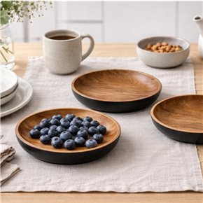 PLATO REDONDO EXT COL NEGRO 20CMS MADERA ACACIA