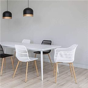 Esta silla una opción perfecta para los que buscan un diseño de tendencia polivalente ideal para comedor, escritorio o exterior. Fabricada en polipropileno con respaldo de rejilla, esta silla de dará un toque fresco y original allá donde decidas colocarla. Ancho: 46 cm - Profundidad: 36 cm - Altura: 76 cm