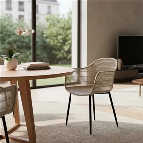 Esta silla es una opción fresca y contemporánea para el mobiliario del hogar. El respaldo curvo y el asiento moldeado inclinado, apoyado por las patas, brindan comodidad para sentarse durante largos períodos. Su apariencia decorativa y sencilla es adecuada para la mayoría de tipos de habitaciones, salones, dormitorios, salas de estar, áreas de oficina y bares. Estructura de pata de silla de metal: con recubrimiento en polvo adecuado para uso en exteriores. Altura de la silla: 85 cm - Altura del asiento de la silla: 46 cm - Altura del brazo de la silla: 73 cm - Profundidad de la silla: 44 cm - Ancho de la silla: 56 cm -