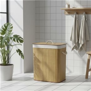 CESTO PELGABLE 52X32X60CMS DOS DIVISIONES C/TAPA FUNDA BAMBU NAT.