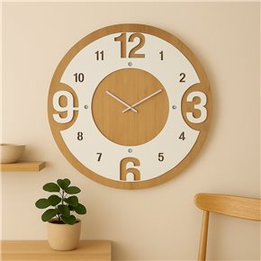 RELOJ DE PARED MDF D68X68X4.5CM BLANCO Y MADERA