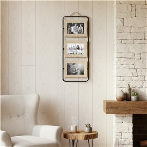 PORTARRETRATOS TRIPLE PARA COLGAR METAL Y MADERA 23X55X1 CM