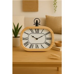RELOJ DE MESA, MADERA OVAL 25X21.5X6 CM