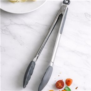 PINZA SILICONA 30CM MANGO ACERO INOX GRIS