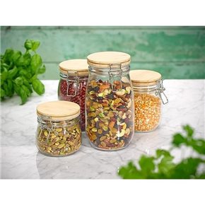 RECIPIENTE VIDRIO 1500ML TAPA MADERA/BROCHE D11XH22CM