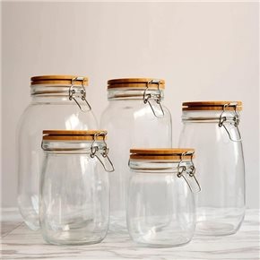 RECIPIENTE VIDRIO 2000ML TAPA MADERA/BROCHE D12.5XH25.5CM