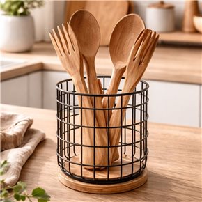 ORGANIZADOR 16X12X18CMS ACERO NEGRO Y BAMBU