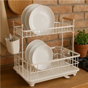 ESCURRIDOR METAL 2 NIVELES C/ASAS MADERA Y BANDEJA