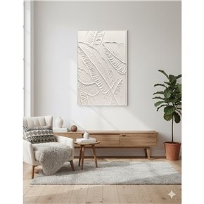 CUADRO CANVAS 60x90cm MARCO PINTURA HOJAS BLANCAS
