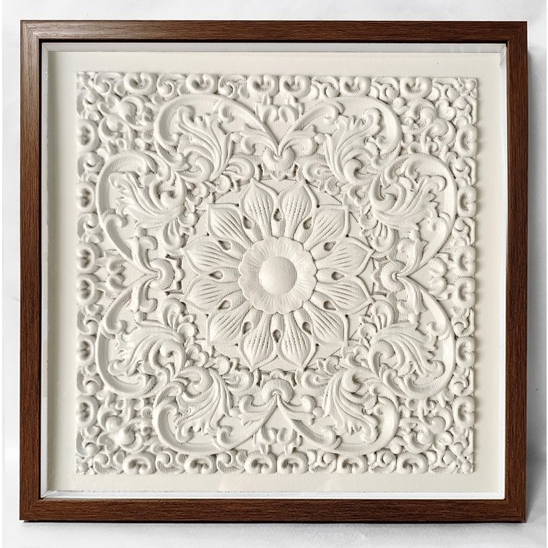 CUADRO CANVAS 50x50cm FLOR RELIEVE BLANCO