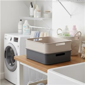 CESTO PLASTICO RECTANGULAR 38x32x8CM GRIS OSCURO COZA