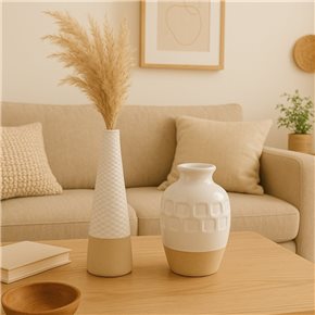 FLORERO LARGO DE RED D6x16CM CERAM BLANCO/NATURAL