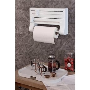 Portarrollos de cocina de aluminio, Dimensiones: 38 x 255 x 85 CM; Apto para 3 rollos diferentes. Ahorra espacio; Listo para instalar; Gracias al nuevo sistema de cubierta, todos los rollos y láminas se pueden colocar muy fácilmente; Incluye cuchillas mejoradas para un uso fácil.