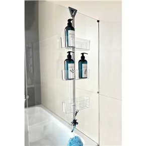 Estante de baño Fabricado íntegramente en material inoxidable * Zonas para colocar botellas grandes de shampoo, accesorios, jabón, etc. * 2 estantes regulables en altura * Se puede montar en todas las cabinas de ducha con o sin marco o en una pared plana * Dimensiones del estante: 25x9,5x7,5 CM * Longitud del producto: 83 CM