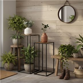 SET 2 MESAS AUX 27X27X70/23X23X60CM MADERA Y METAL