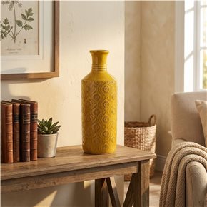 FLORERO ÉTNICO CERÁMICA 11X11X31 AMARILLO