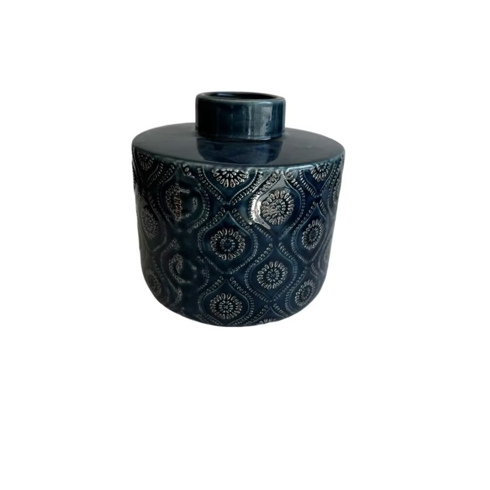FLORERO ÉTNICO CERÁMICA 17X17X15.5CM AZUL