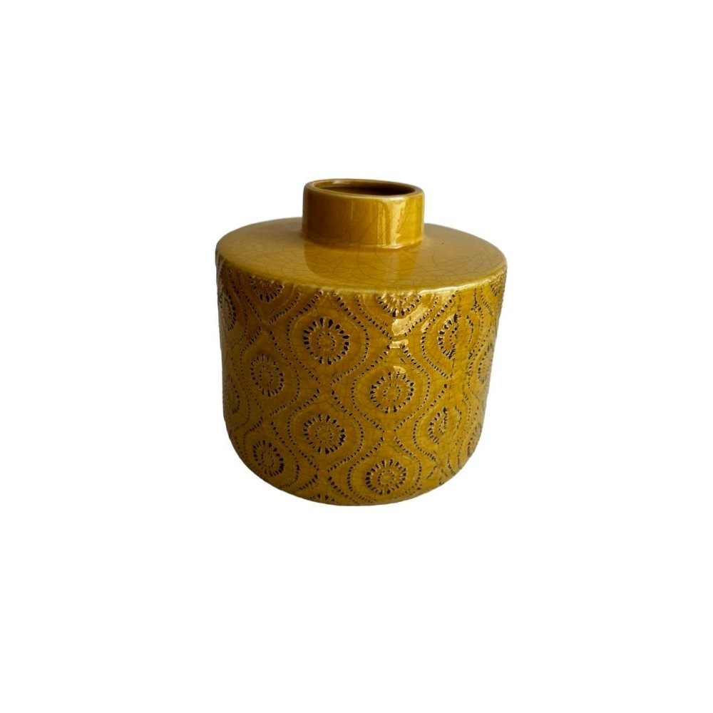 FLORERO ÉTNICO CERÁMICA 17X17X15.5CM AMARILLO