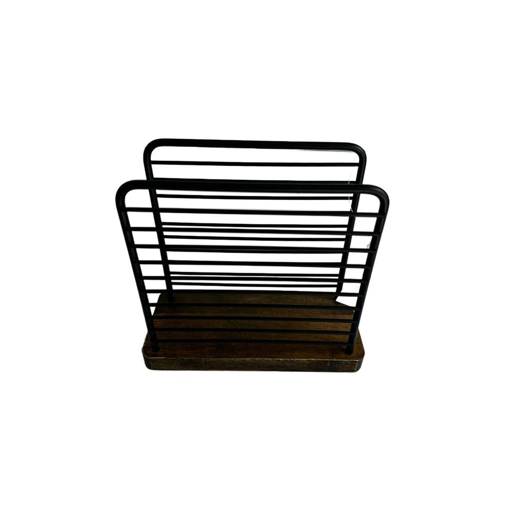 SERVILLETERO METAL CON MADERA 14x6x13CM NEGRO