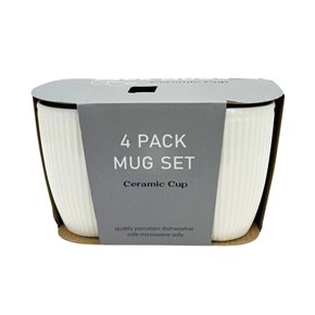 SET X4 TAZAS DISEÑO RAYAS 360ML 8.5X10.5CM BLANCO